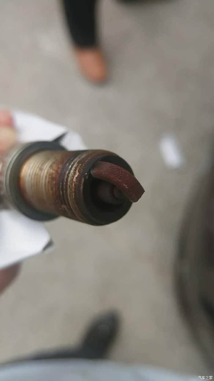 师傅说这个颜色烧的不太好,应该是油品不太好,这个前面都泛红色了,如果火花塞烧的好一般都是会呈金黄色。