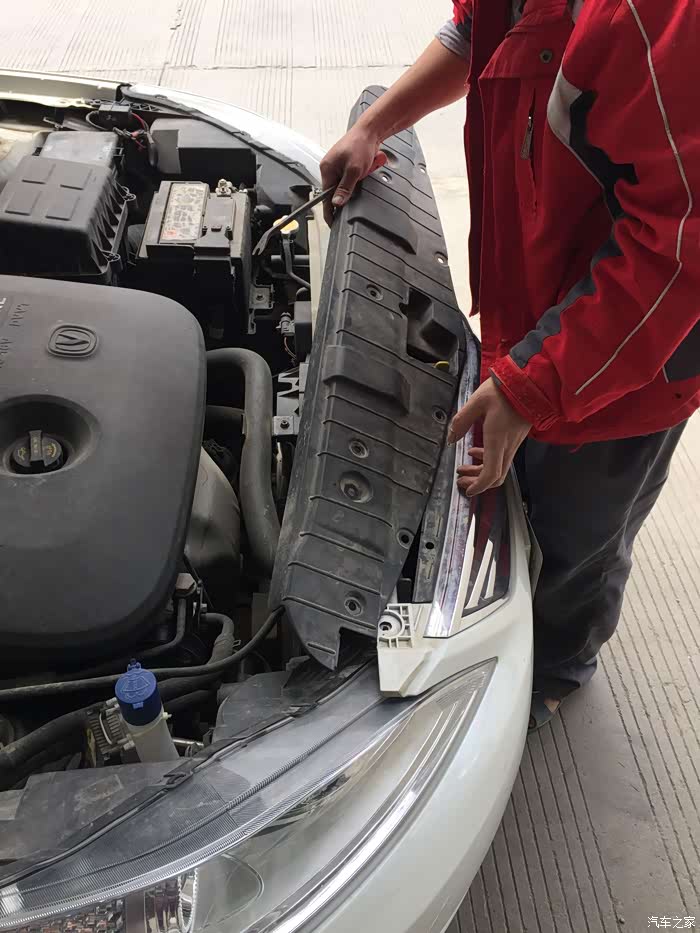 拆开前护杠,看咯,长安原厂的护杠很稳固。