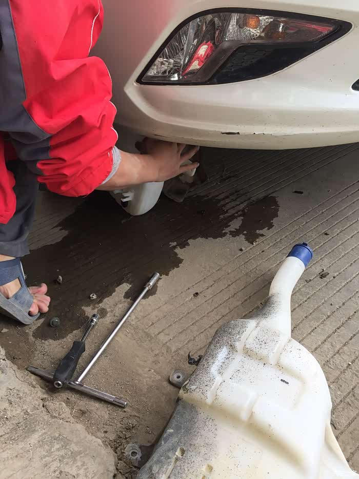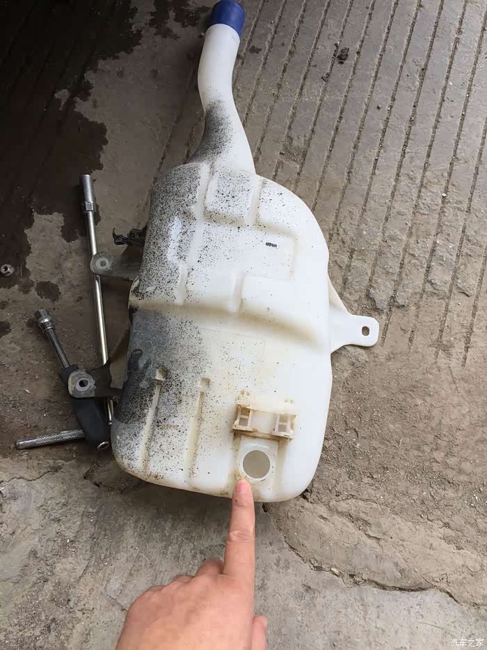 发现问题:像往常一样,停车在路边,起步行驶,感觉前挡风玻璃有点灰,打开雨刮喷水,打算洗涤一下前挡风玻璃的灰尘,突然发现雨刮正常工作但是没有水喷出来。一头蒙了,一直很少使用雨刮水。怎么会没了呢。诊断问题:小问题一桩,应该是水壶漏水了,因为之前有过一次这样情况,这个水壶在一年以前有过裂缝修补案例了,作业也分享了