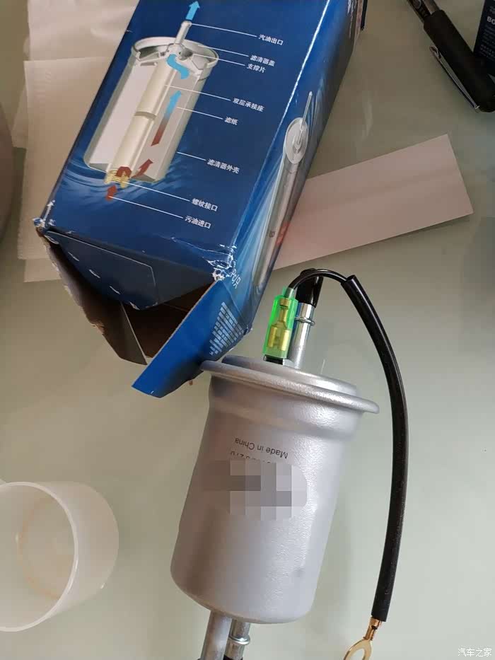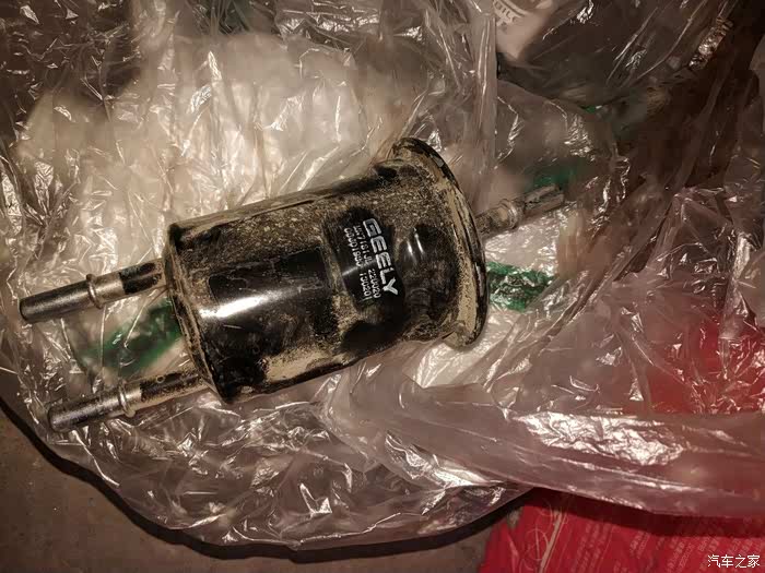 换后的原厂汽油滤芯,乌黑发亮不是先前沾满尘土的那个