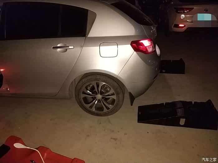夜黑风高、无人打扰!安心干活的好环境!开上保养支架(无地沟),后轮垫砖,安全要紧!