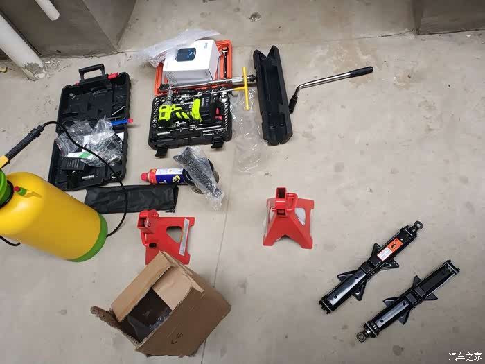 添置的家伙事,不全,主要是棘轮扳手套装、电动扳手、安全支架、洗车喷壶,还有别的工具没展示,随着DIY的进行,会渐次登场,这是前一段时间轮胎换位用到的工具。