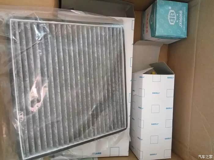 网购国产半合成SL级5W-30机油(坛子里大神也有不少用的,不是妹夫、贝壳那样的大品牌没有假货,半合成也不贵,跑个6千换掉没问题,起码比以前矿物油高一个等级)、蚌埠某厂机滤、原厂空滤(换过后多次拆开空滤盒子检查,发现空滤盒近发动级端还是很干净)、空调滤、汽油滤(将近2万了,鉴于油品质量参差不齐,换了安心)。