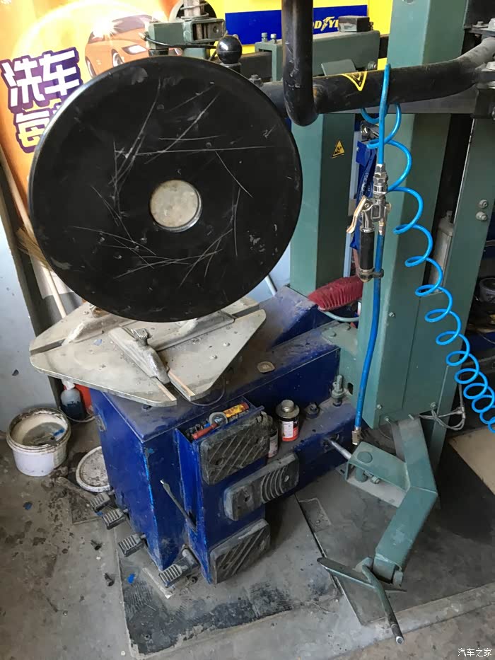 动平衡机器,特别说一下,以前做的动平衡很多平衡块都是多余的,师傅说以前一看就是新手做的,我的轮胎有的只是拿掉几个平衡块就好了……所以做动平衡还是找个靠谱地方吧