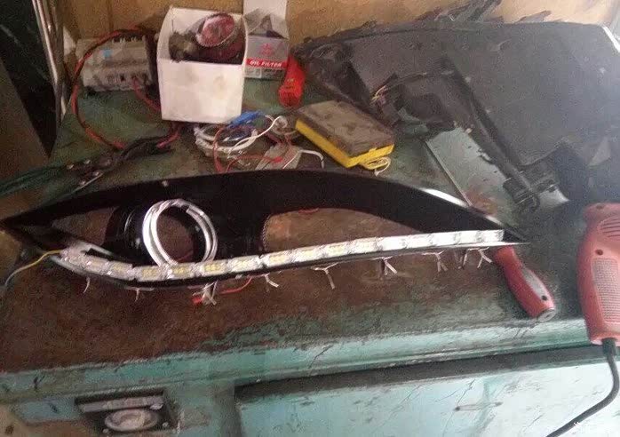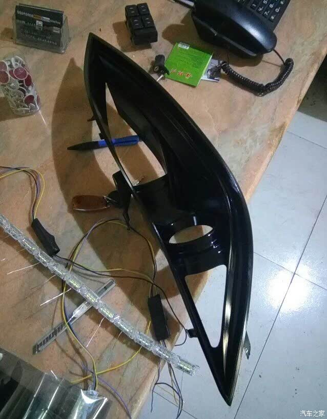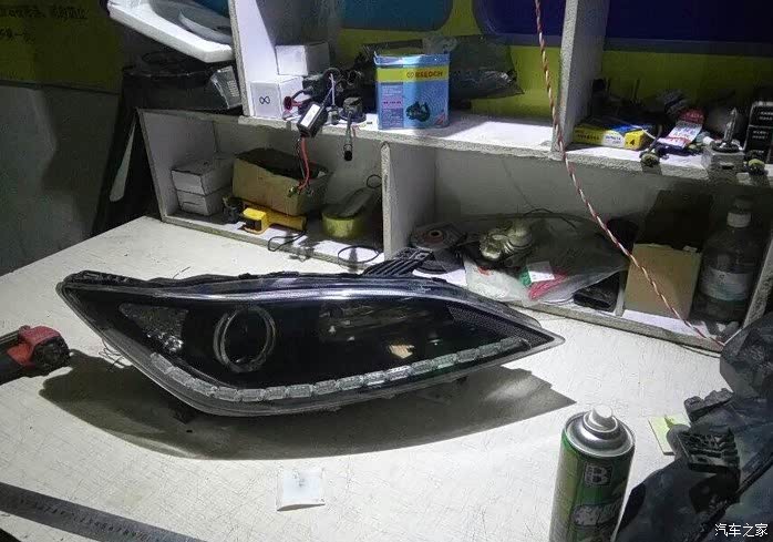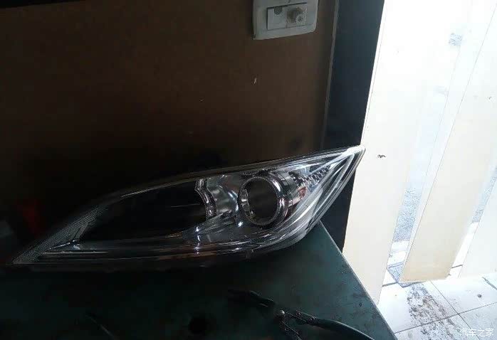 原车是原装的卤素灯,夜晚开车的时候有路灯的地方不觉得什么,一到没有路灯的地方特别黑了,尤其对面来一辆安装氙气灯的车辆,几乎看不清路,所以一直想更换它,由于晚上出门出的少,一直拖到现在也没有换。这不前段时间参加车友聚会,看到一个车友车上改装的大灯很漂亮,尤其到了晚上更加漂亮了,心动极了,第二天就立刻行动,更换大灯.