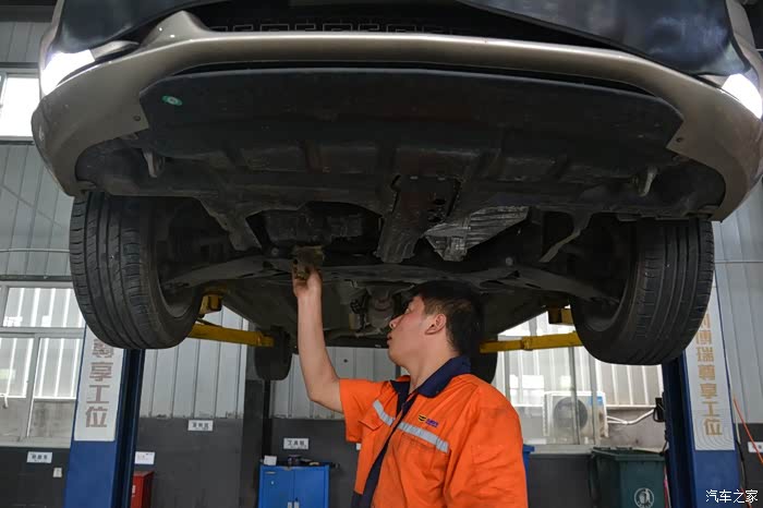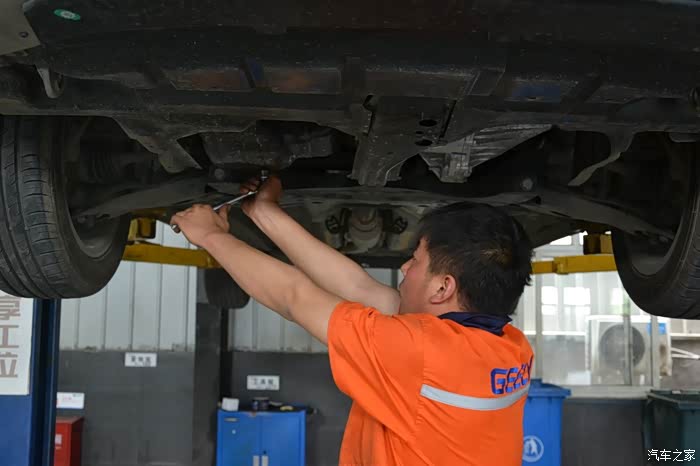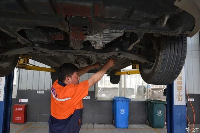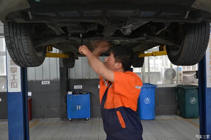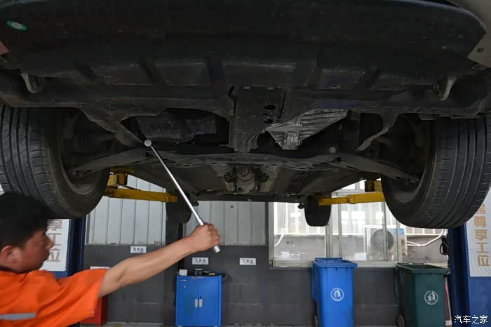 在等待机油流出的时间,师傅会做其他检查,比如轮胎有没有鼓包开裂,底盘螺栓有无松动,底盘有无磕碰第。