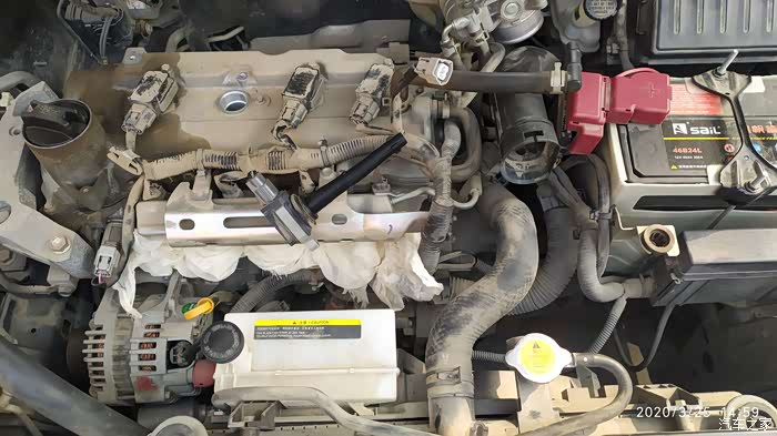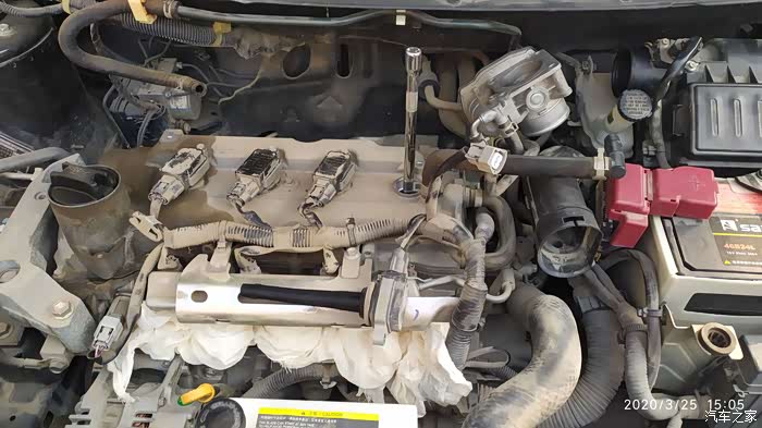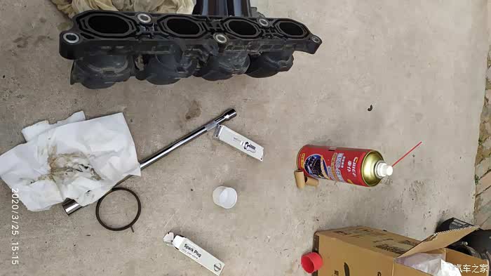 12挡起步时候最明显跑起来就正常了,回来后问一个专修日产的朋友(ssss技师)。直接给我回了四个字换火花塞于是就在网上订购了所需工具和清洗剂。机油滤芯先到的用了二十分钟吧就把机油机滤换了(没有拍照),没有合适盆就用食用油桶盛的废机油流的马路上都是。25号所有工具到期下午开拆更换火花塞顺便把节气门进气道也清洗一下吧。