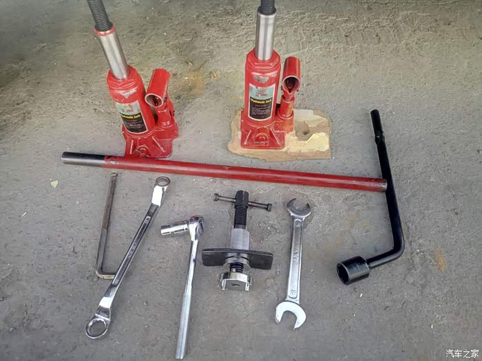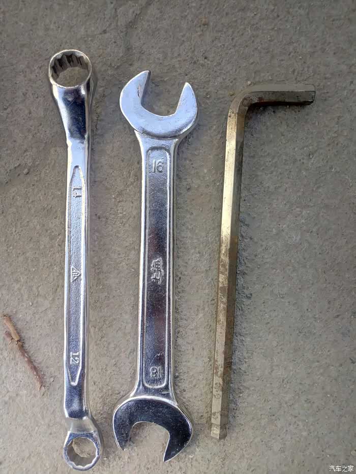 拆轮子用的一套工具就不多说了,不会拆轮子的也不需要往下看了,其他必须工具有13个的梅花扳手,8毫米的内六角,十毫米的套筒,16的叉扳手,螺丝刀翘刹车片用,还有最重要的刹车片和活塞回位工具(如果你有这些工具可以自己换,没有买的那个价钱够你去修车店找人家换的钱了),还有最好整一个小马扎