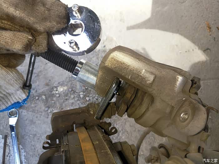 也可以垫上个旧刹车片往里顶顶试试