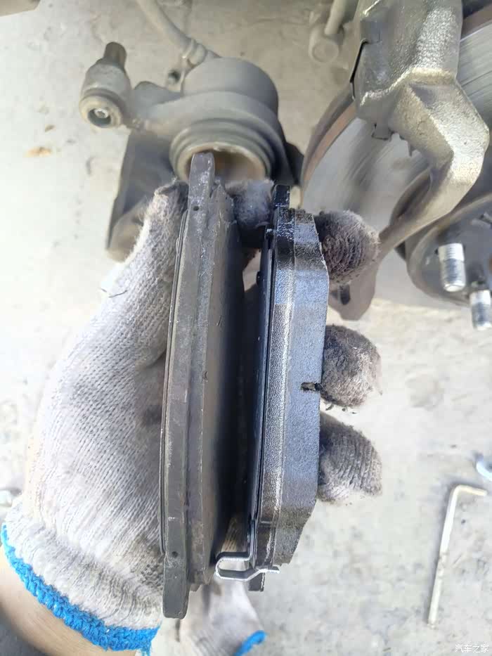 刹车片该换的症状:1:行驶过程中踩刹车不是平时的感觉并且刹车效果不好。2:车轮正常转动不踩刹车情况下车轮刹车有铁摩擦声。3:看厚度,4毫米左右必须换。(我的车是后轮磨得快,出现刹车距离延长制动效果不好后马上出现摩擦声,然后买工具换了,公里数44800)