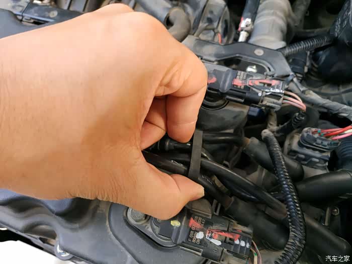拿出缸线的卡扣,固定缸线,防止摆动脱落,影响行车安全