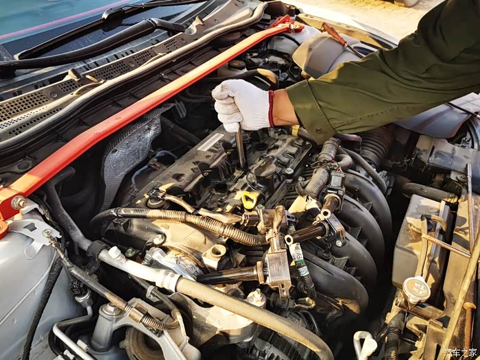 拔掉了高压线。开始拆。这里要注意。必须用长筒的套筒。