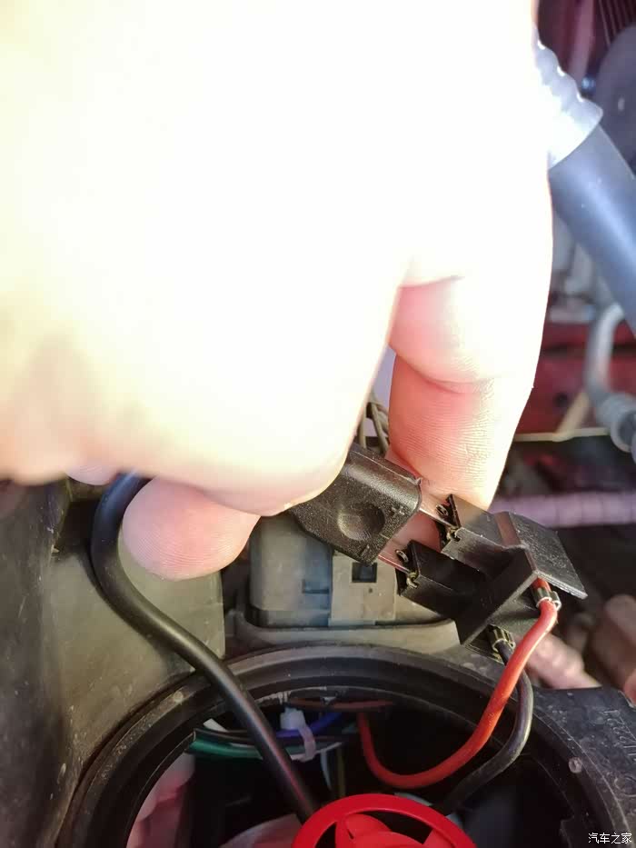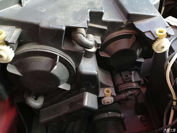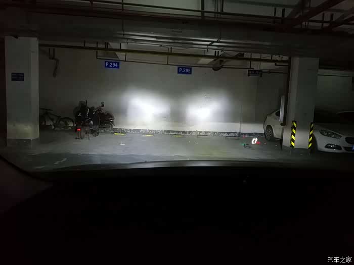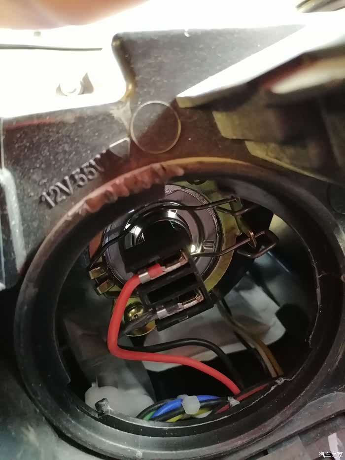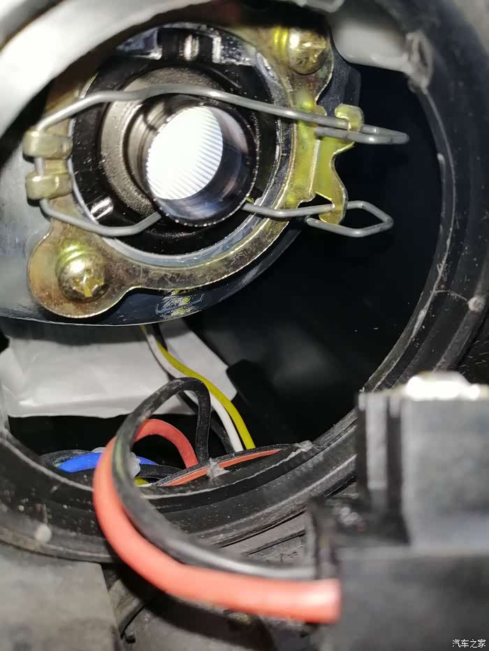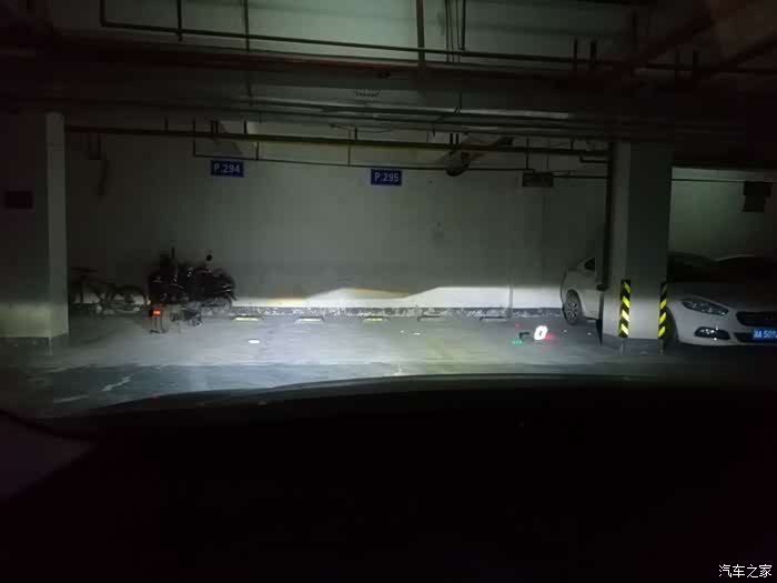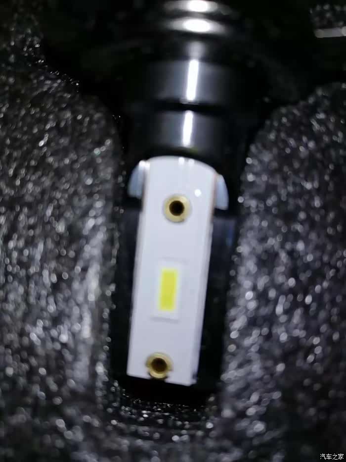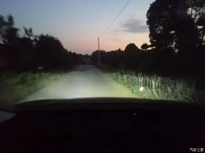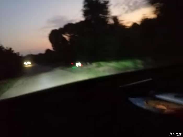 着车,开近光。可以通过转动LED灯来调整光照位置。这里有个要注意的就是风扇,由于风扇后面的罩壳和风扇之家的间隙比较小,有可能在LED灯插入的时候罩壳变形,把扇叶卡住了,这个时候用一字螺丝刀稍微撬一下罩壳,调整间隙到风扇正常运转就好了。感觉切线什么的都可以了就可以把后盖盖上了。照片是近光的效果,车内拍摄,