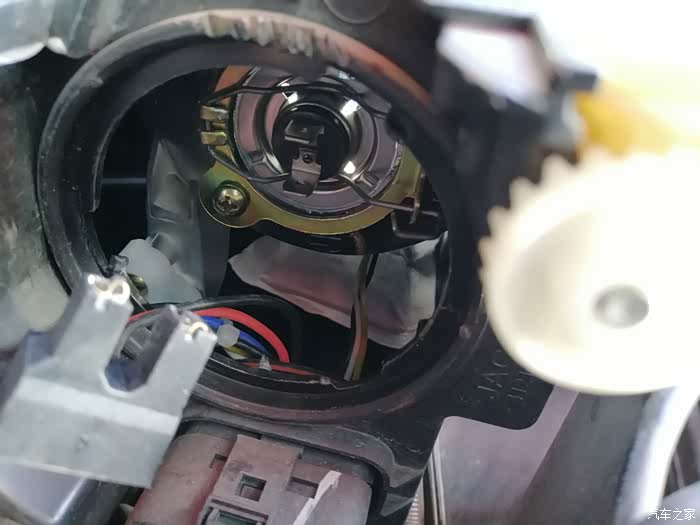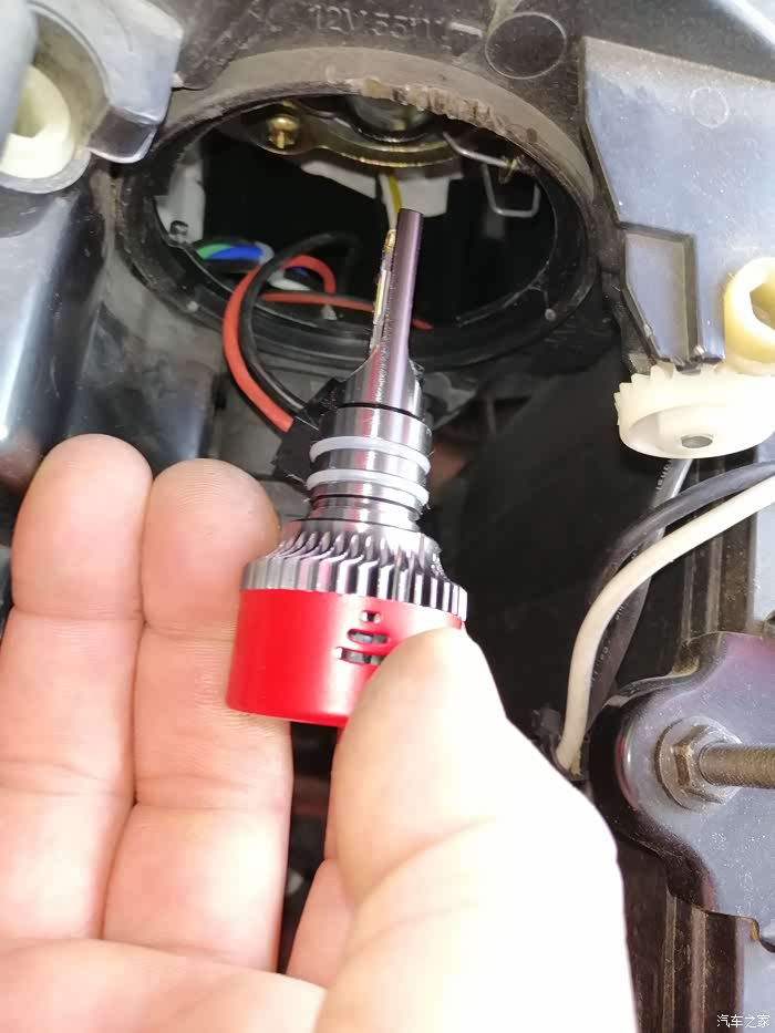 把LED灯的灯座装到近光灯的灯座里面,固定好。