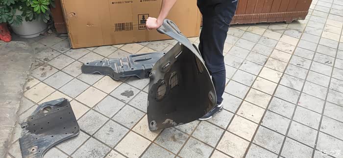 副驾底盘拆掉原车塑料的样子,里面的线路换还是挺多的,以前还不知道底盘下面是这样子的,长见识