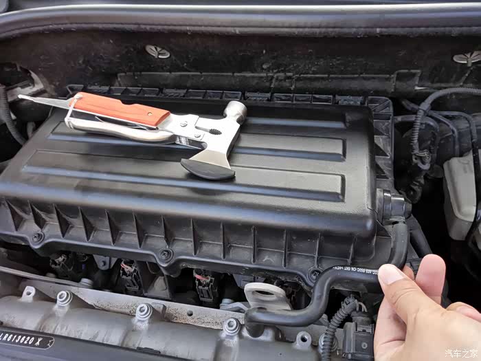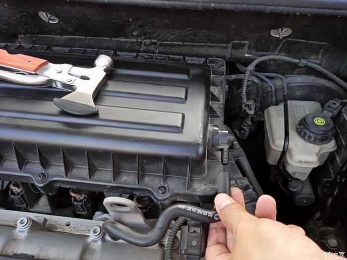 这是我的发动机舱,发动机上边的就是空气滤芯盒