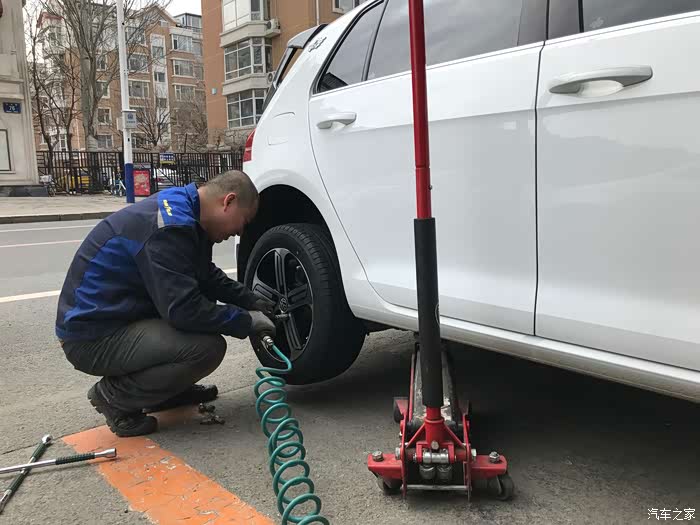 偶遇车队的朋友也来换胎.(东北很多车冬天都要用雪地胎,然后暖和了在换回四季胎)