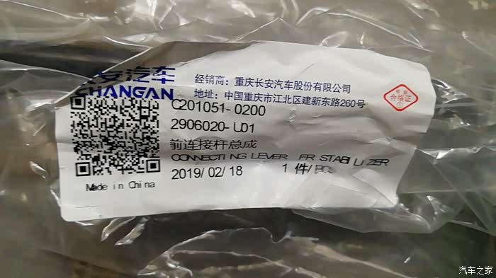 确认了前连接杆为长安汽车厂家配件,确认维修更换