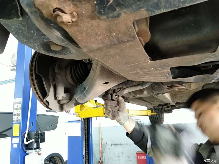 经过技师检查是“前连接杆总成”间隙出了点问题,是不是近期比较烂的路行驶太多有点原因。的确是前段时间朋友开到云南的巧家县的一个镇上去看矿山开采情况,据说去矿山的路全是新修建的片石路面,估计“前连接杆总成”的问题与朋友借支跑烂路有关。唉,既然都检查出问题是“前连接杆总成”问题,就把它给更换了