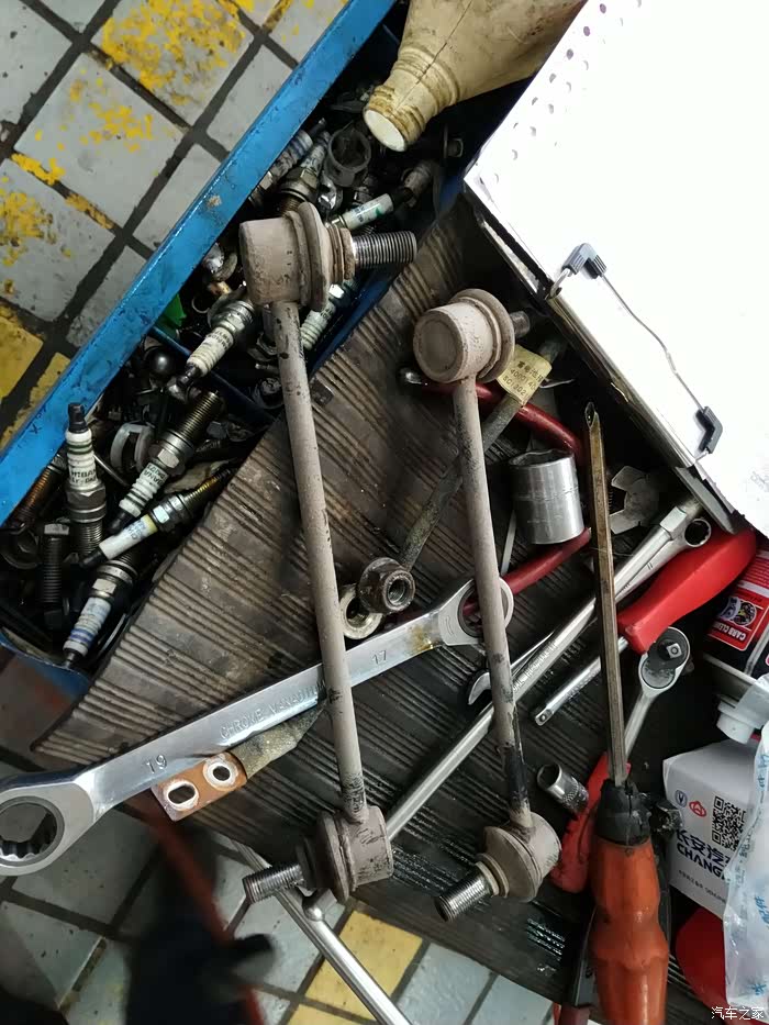 师傅开始准备拆除原来已有间隙问题的前连接杆