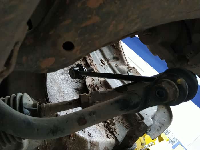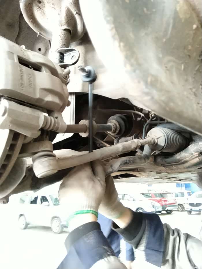 师傅正在拆除原来已有间隙问题的前连接杆