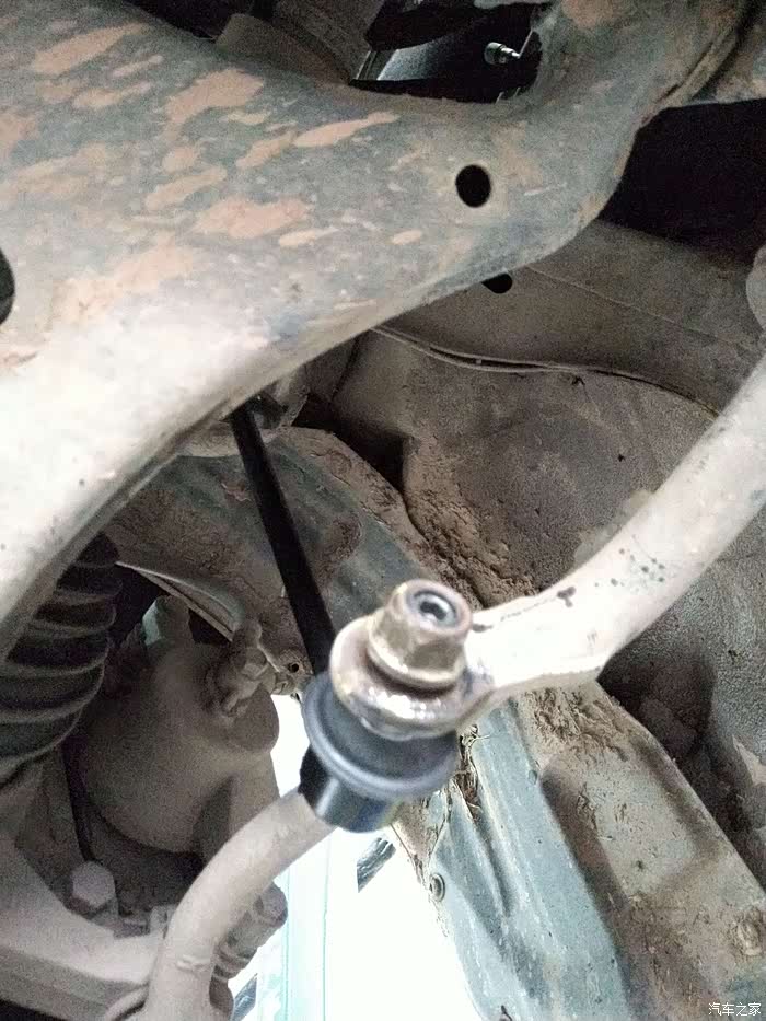 师傅安装好的新的前连接杆总成