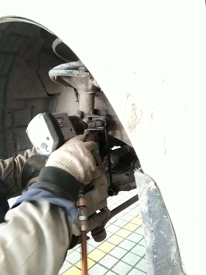 师傅已拆除下一只原来已有间隙问题的前连接杆