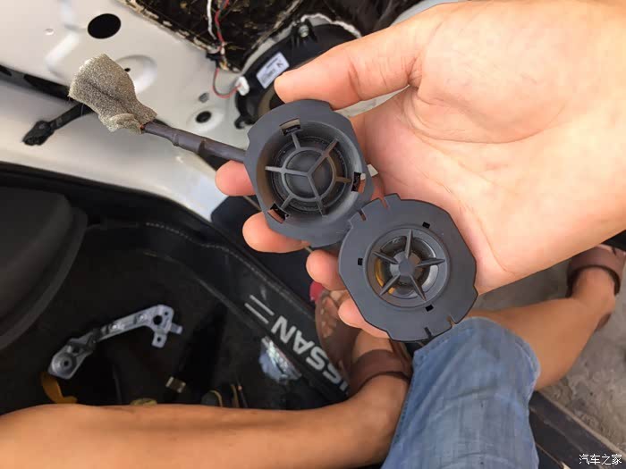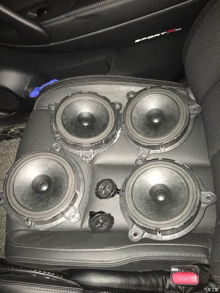 如图。两边高音头,四门喇叭全部更换完毕。复位所有拆下来的东西,试试效果哈。