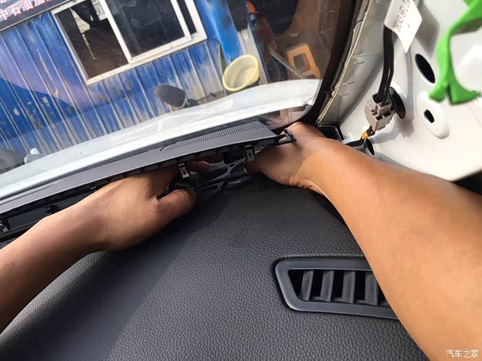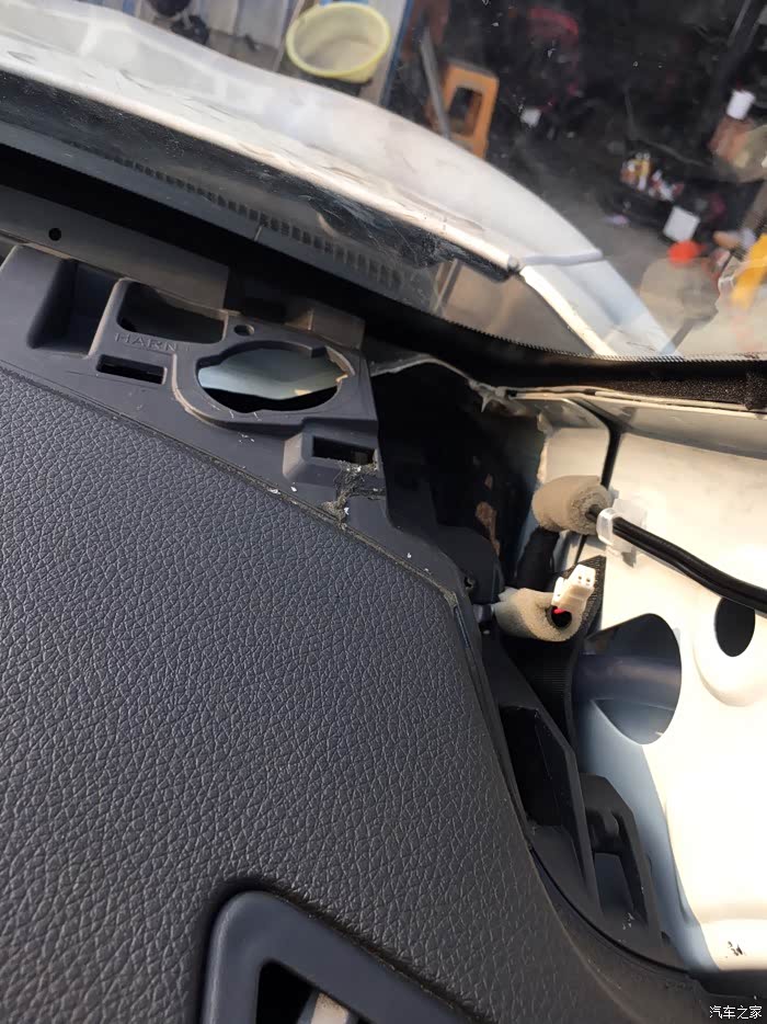 高音头,先拆A柱,接着拆挡风玻璃下的这个黑色装饰板。