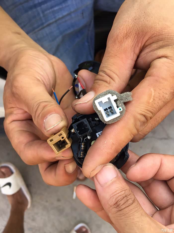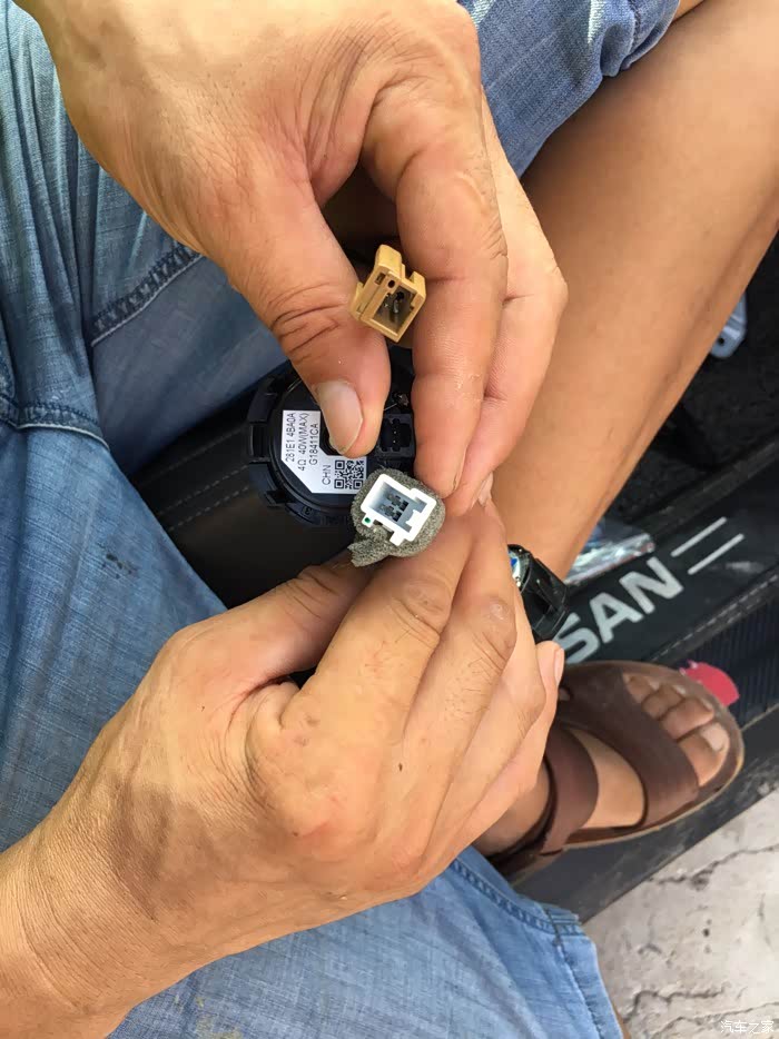 把原车插口゛修边゛,买来的喇叭白色接头剪掉,洛铁焊上,褐色接头。