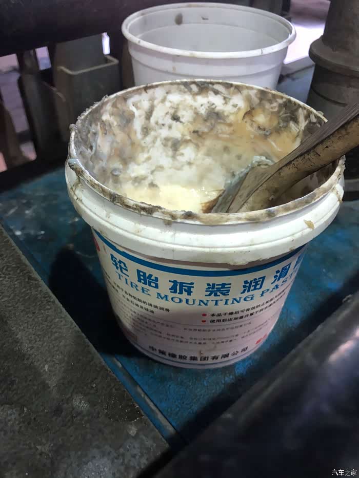 装胎进行中。。。。边上涂抹的是轮胎润滑油