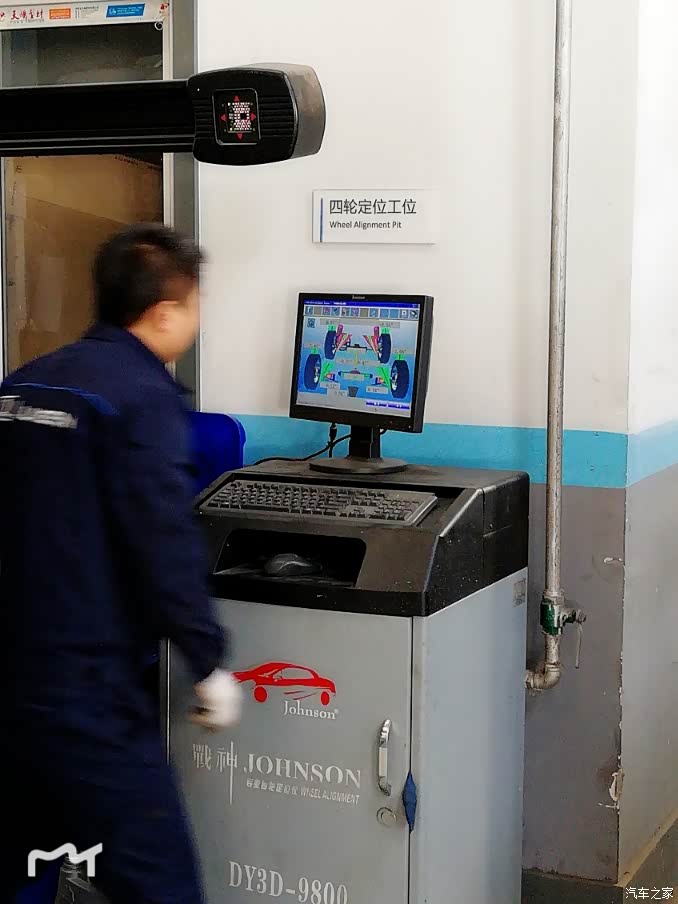 试车后别的一切正常,就是方向不正,师傅说为了安全起见做个四轮定位。