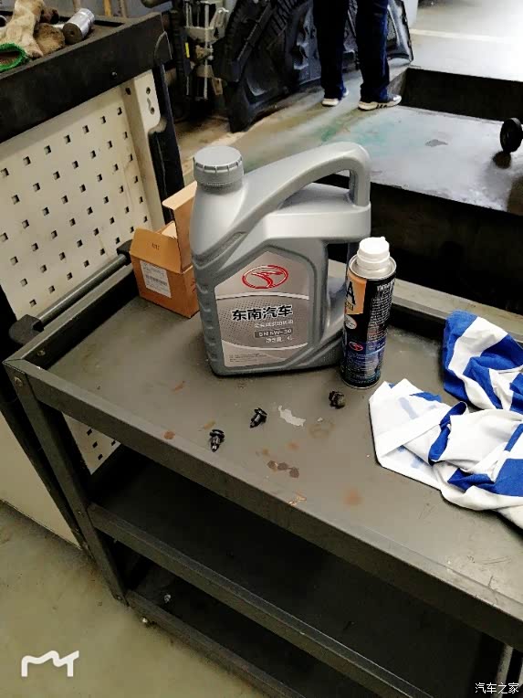 第一项是常规保养更换机油,维修师傅很细心先是清理了机器盖子上的尘土后才取下的。