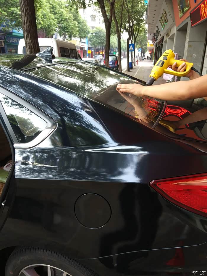 因为后挡玻璃是弧形的,必须用风筒将膜定型,否则会翘起来。