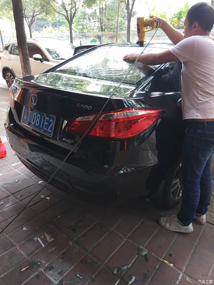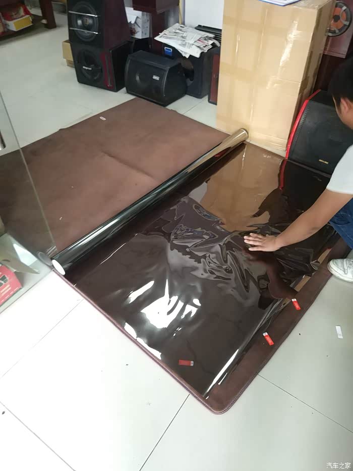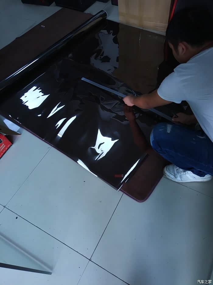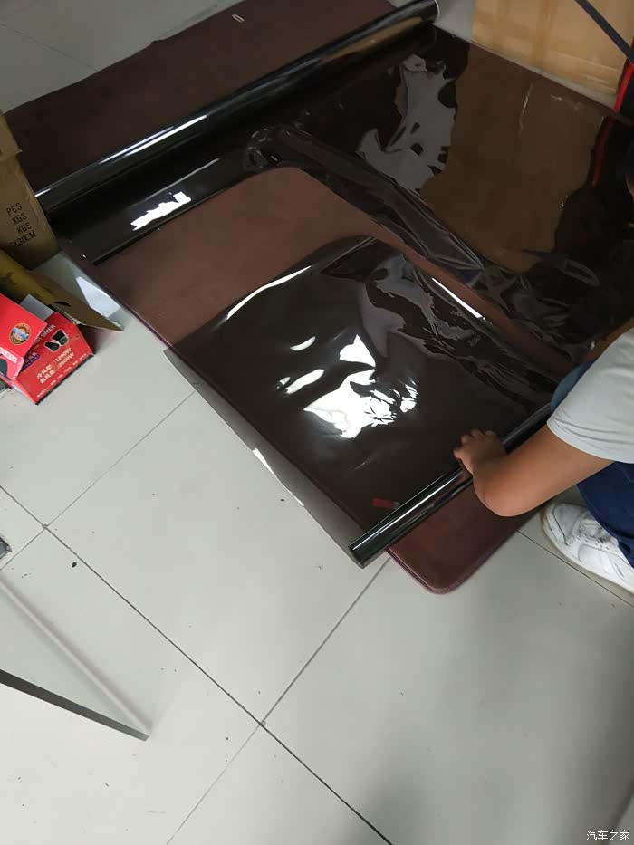 开到施工店,准备换膜。