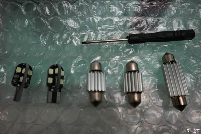 先看看阅读灯、后备箱和牌照灯吧,卖家还送了小改锥,牌照灯选的蓝色的,后排阅读灯好像有点长,不过也能装上