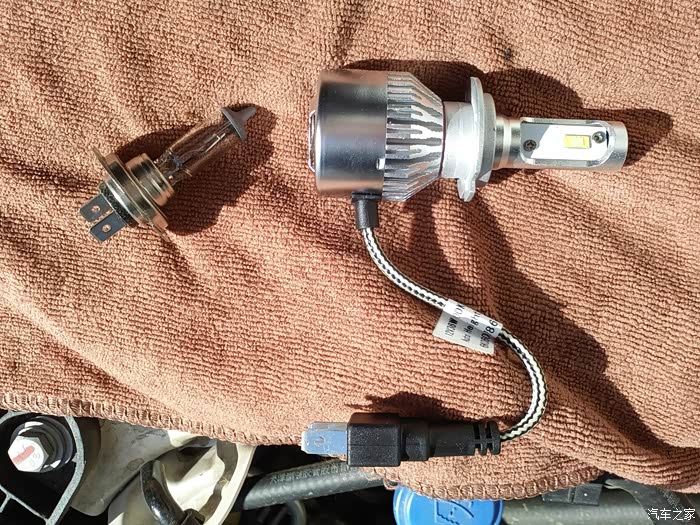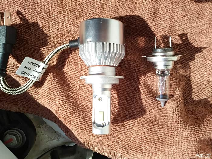 LED灯也不是很大,功率小很多,原车卤素灯55W,LED36W,亮度还高,值得更换