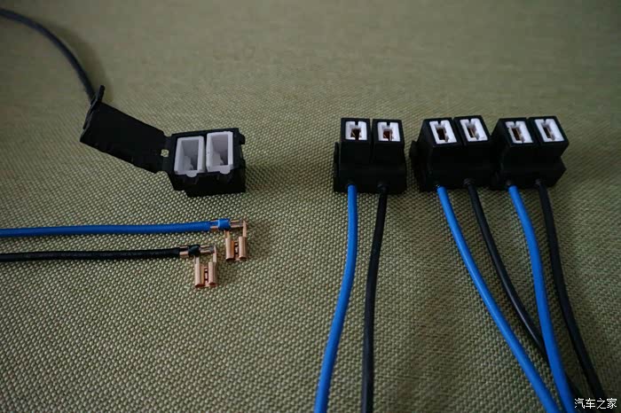 取掉配的线,原车的线鼻子可以直接安在里面,早知道光买壳就ok了
