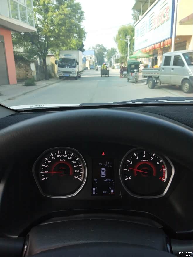 农村路况,并不是一路畅通的,毕竟是县道,大车多,电动车,路况也不是那么好,目前行程28公里,油耗一直5.5L上下。