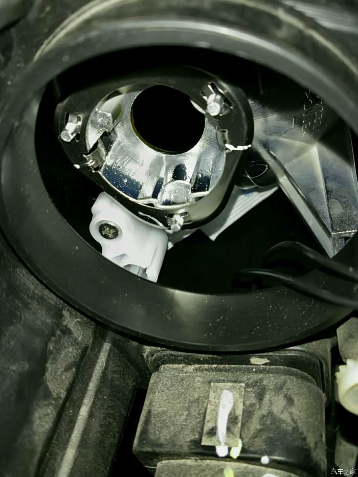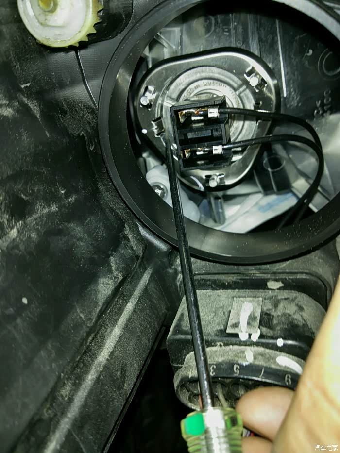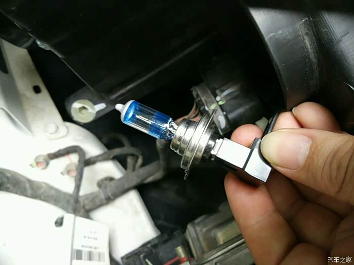 这是远光灯,反正原来买的夜行者三代拆下来了,79块一只阿,总比原车20块的好,换之而后快。用螺丝刀顶一下卡子灯泡就出来了!