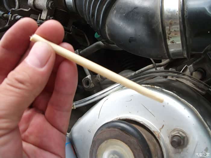 卫生筷轻轻捅高压管阀座,即可排出气体,在这里排气是为了产生真空效应。