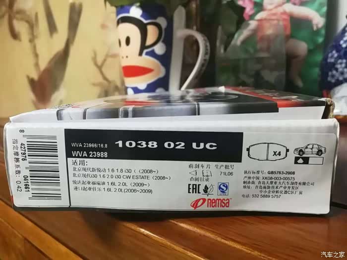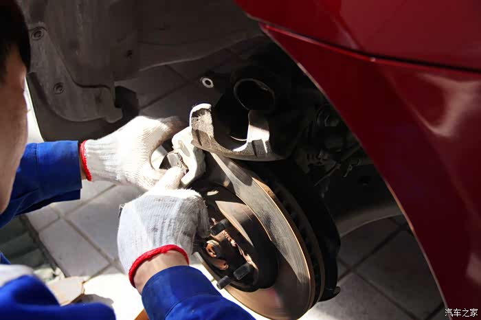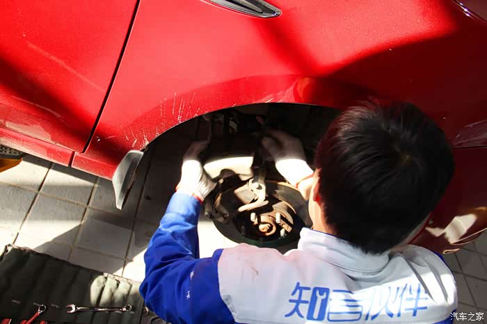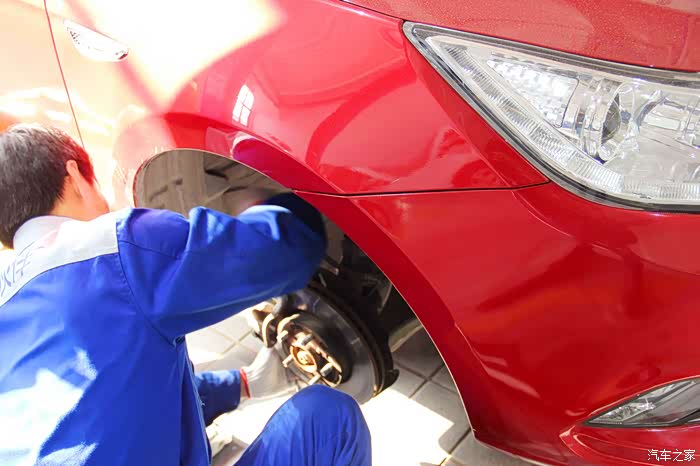 耐磨士陶瓷刹车片并不是原厂标配,所以师傅需要将新刹车片与刹车卡钳比对一下效果,发现果然逸动和悦动的刹车片是完全通用啊……