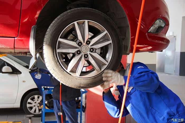 经过打听才知道,师傅要检查悬挂系统及轮胎内侧是否有鼓包、开裂等现象。