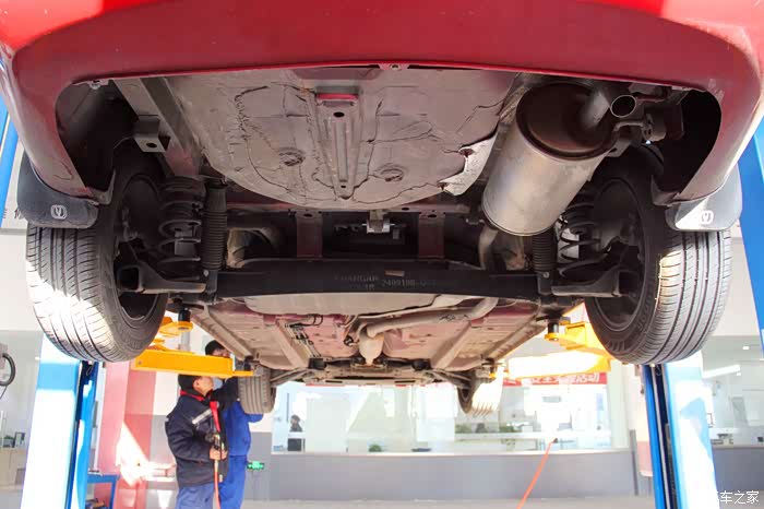 趁机在后面照一下底盘,未涂底盘装甲,3年多的车子,经历过风吹雨打,在这个价位区间,没有太多锈痕,做工值得肯定。
