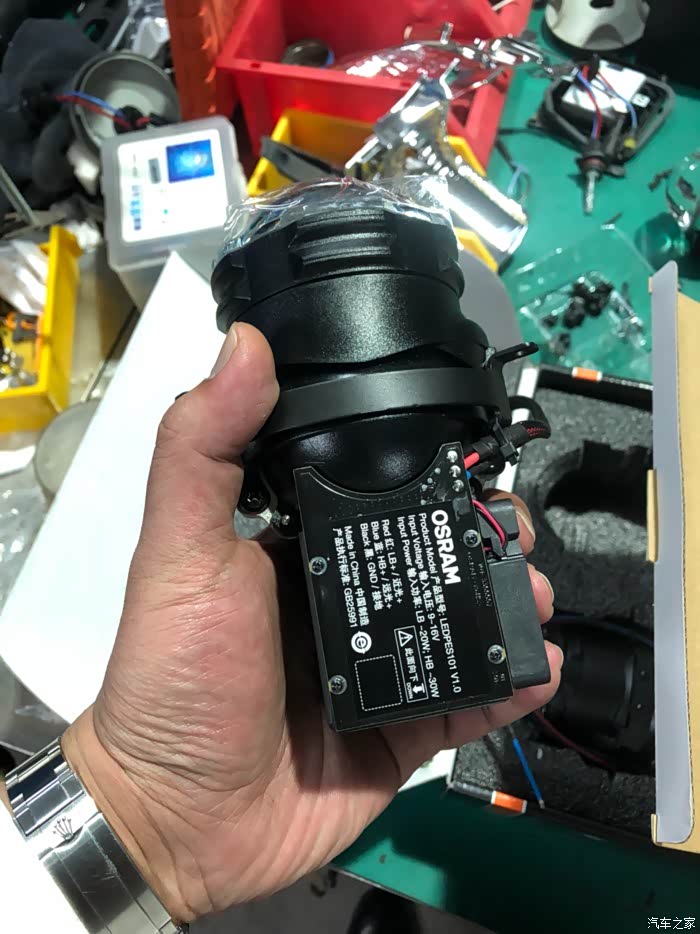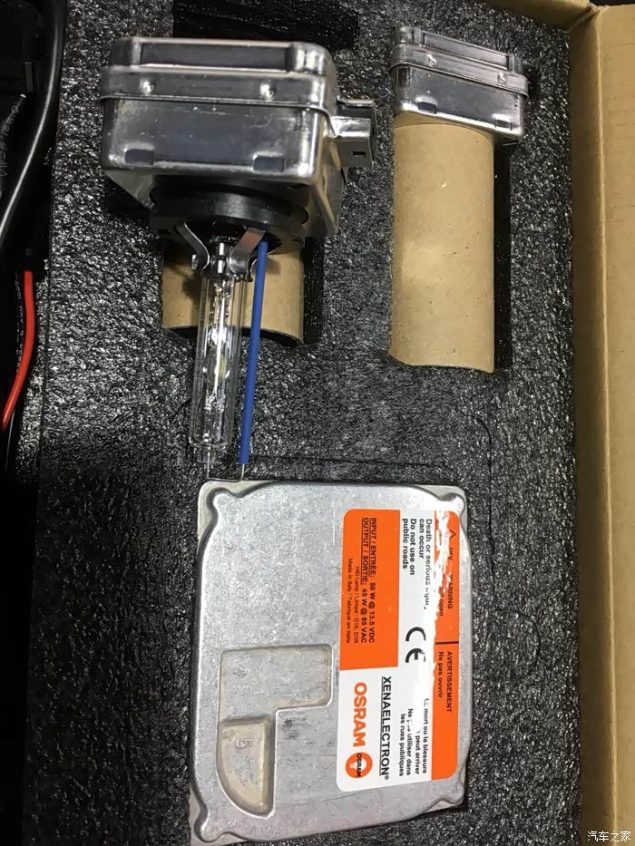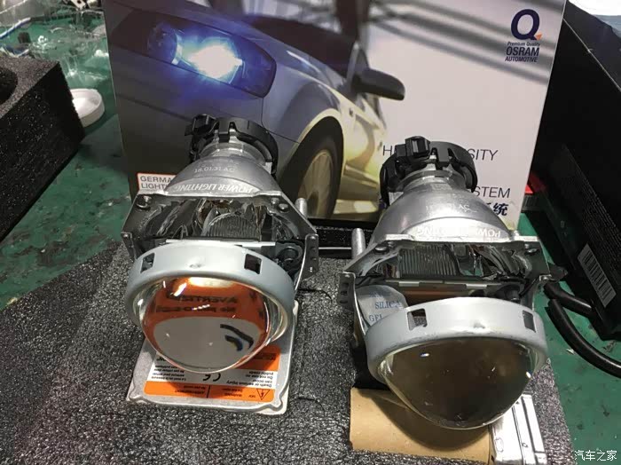 经过几天的考虑和研究。最终决定方案4,将近光位改进口海拉5透镜+欧司朗CBI氙气+45W安定,远光位改成欧司朗魄晓者,实现4近4远。前天上午,朋友跟我说订的货到了,那种激动的心情就像心中有千万只汗血宝马在奔腾,马上把之前拆下来的原车大灯送过去准备开搞。