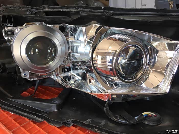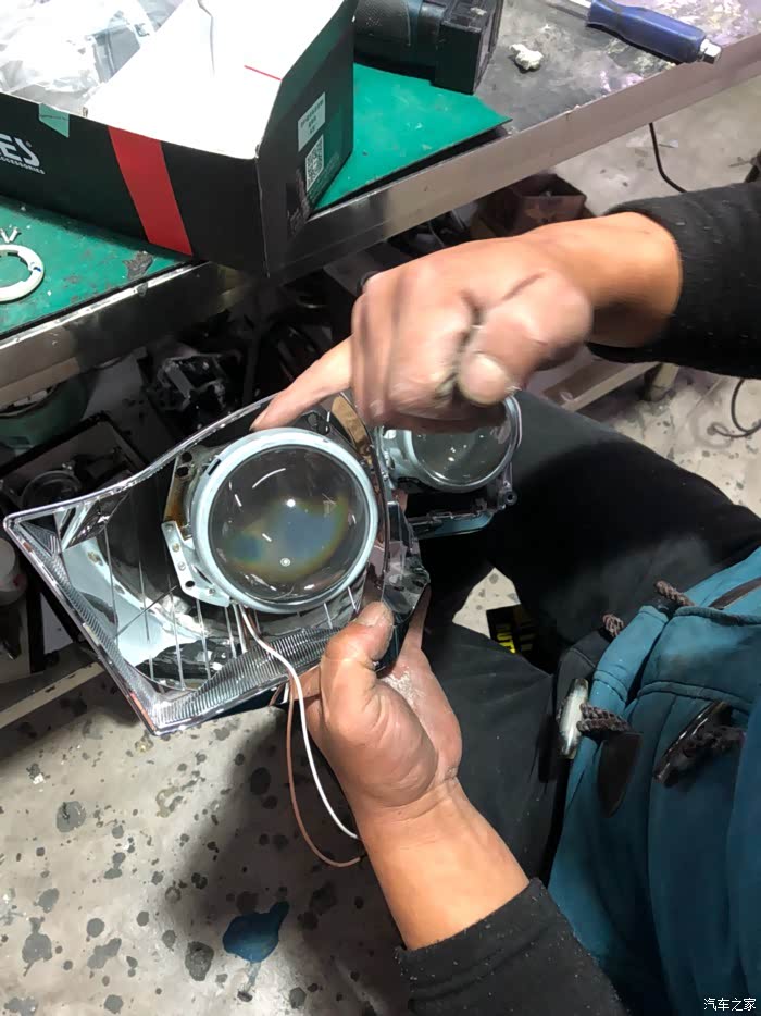 我去到店里时,师傅已经拆开大灯,把原车LED 卸下来,装上海拉5了,这是在给远光位魄晓者定位时偷拍的!