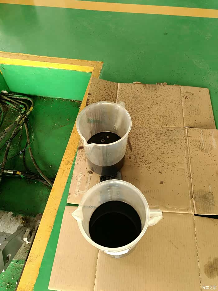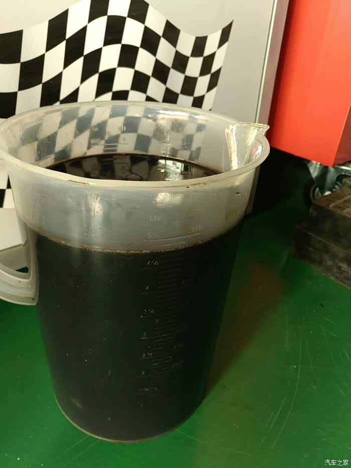 因为在网上看了点资料,所以循环机直接灌进去12.5瓶。然后开机,开始等量换油。新旧油对比,其实我大科的变速箱油不是很黑,还有点红色,因为跑车比较省,路况相对都是中远距离,堵车很少,加上县级市车少。城市的还是建议6-7万公里换,中小城市的建议8-9万更换。下图。