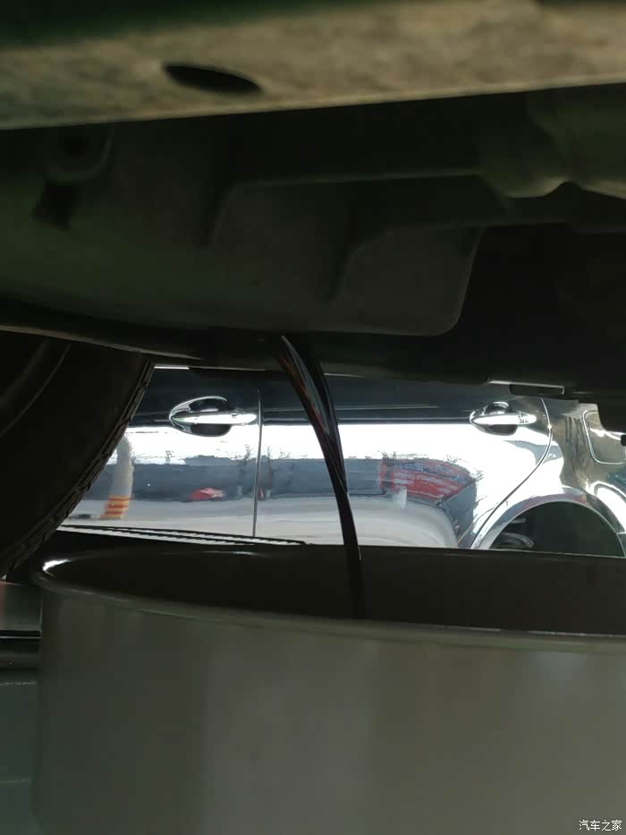 循环换变速箱油大约40-50分钟。然后师傅恢复原样。变速箱油换油结束。最后别忘记检查油位,在地盘机油放油口附近,一个油位螺丝,拍的不是太清楚,大家凑合看一下。