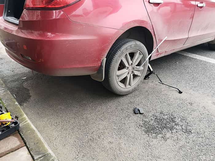 装回轮胎,左后刹车片就更换完毕