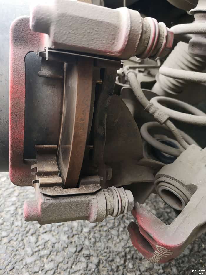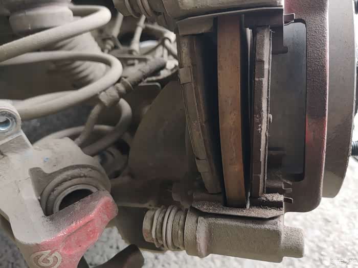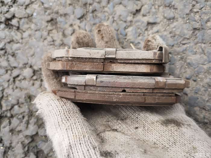 侧面再对比,就知道刹车片早就可以更换了